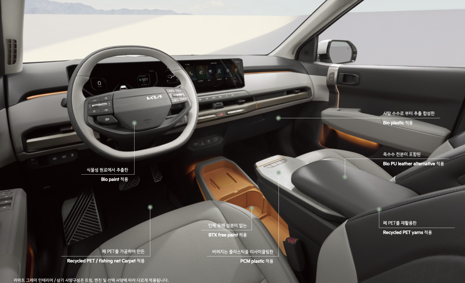 EV3는 ‘오퍼짓 유나이티드’ 디자인 철학을 바탕으로 SUV의 실용성과 하이테크 감각을 조화롭게 결합했습니다. 넓은 실내 공간과 최적화된 적재 공간도 장점입니다.